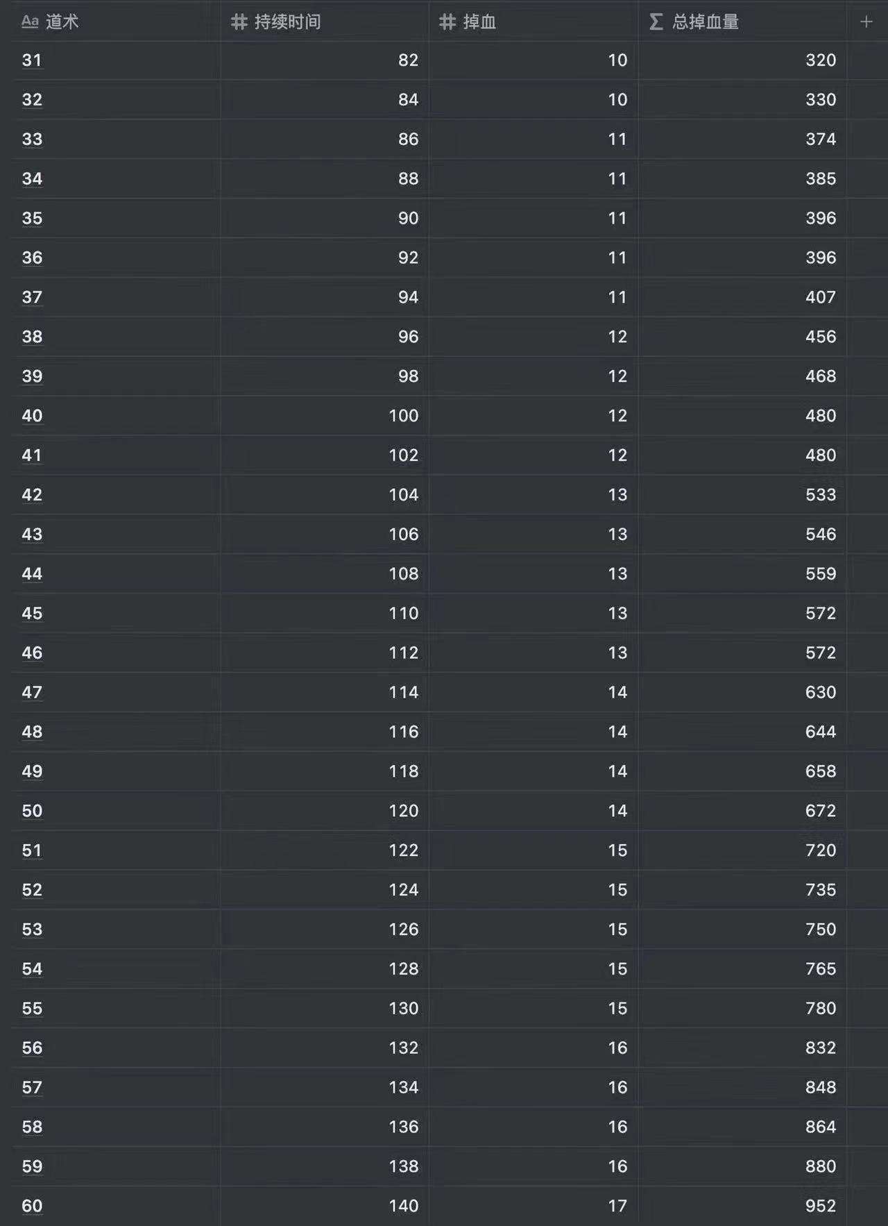 说了这么多,有志于玩道士的朋友,这里给大家介绍一下毒的机制,通过玩家测试可知,如上图,51点道术是一个分水岭。51~55道术毒能每次掉15血,而50道只能掉14血,更高端的56道术能每次掉16血(但56道术9套非常难,非常需要钞能力)。这里给大家介绍最经济实惠的51道9套配置: